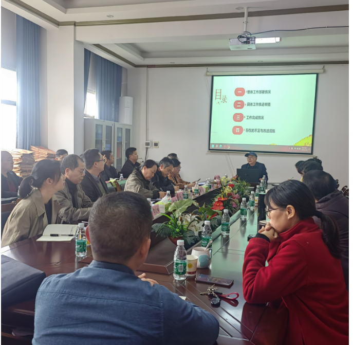首先,检查督查第四组组长孟娟教授强调了本次检查督查工作的目的、内容与要求,并对本次工作任务进行了分工。接着,副院长曾文围绕学院审核评估整体工作部署、具体工作举措、工作任务完成情况、存在的不足与改进措施等四个方面向专家们做了详细汇报。