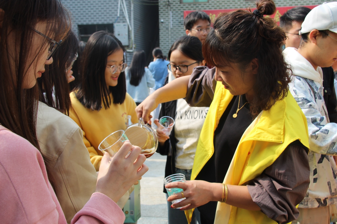 (图为师生们品尝安化黑茶)