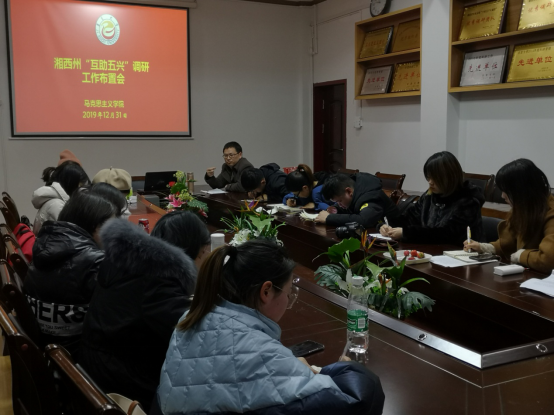 本网讯(文/杨丹) 12月31日19:30,我院“中国梦之声”研究生学术沙龙2019年第13期在学院会议室举行,该会也是湘西州“互助五兴”基层党建模式、农村治理模式调研工作推进会,这也是学院2019年研究生学术沙龙的收官活动。18、19级研究生参加此次会议,廖胜刚院长、吴恒同老师出席指导。