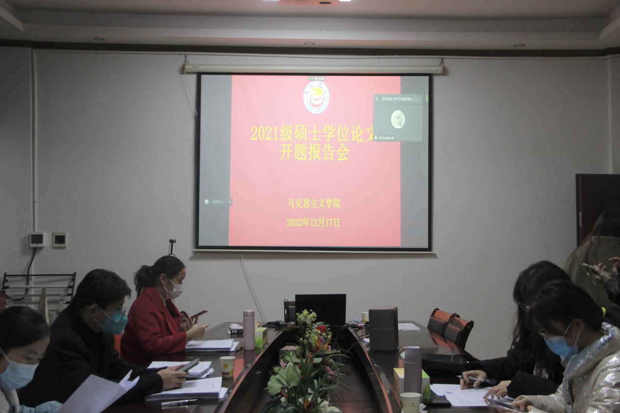 (通讯员 龚亭韵)本网讯:根据学校硕士研究生人才培养方案的有关规定及《关于开展2022年研究生学位论文开题和中期检查工作的通知》的相关要求,我院于12月17日组织了2021级硕士学位论文开题报告会。我院院长肖映胜、副院长曾文、孙忠良教授、廖金香教授等十余位硕士生导师组成工作组,参与此次开题检查工作。