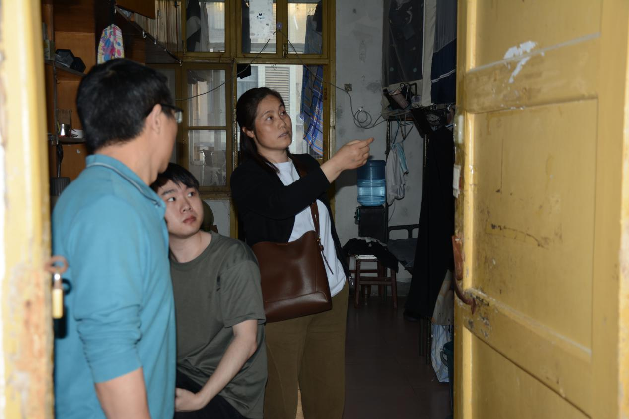 (图为学院老师检查混合寝室)
