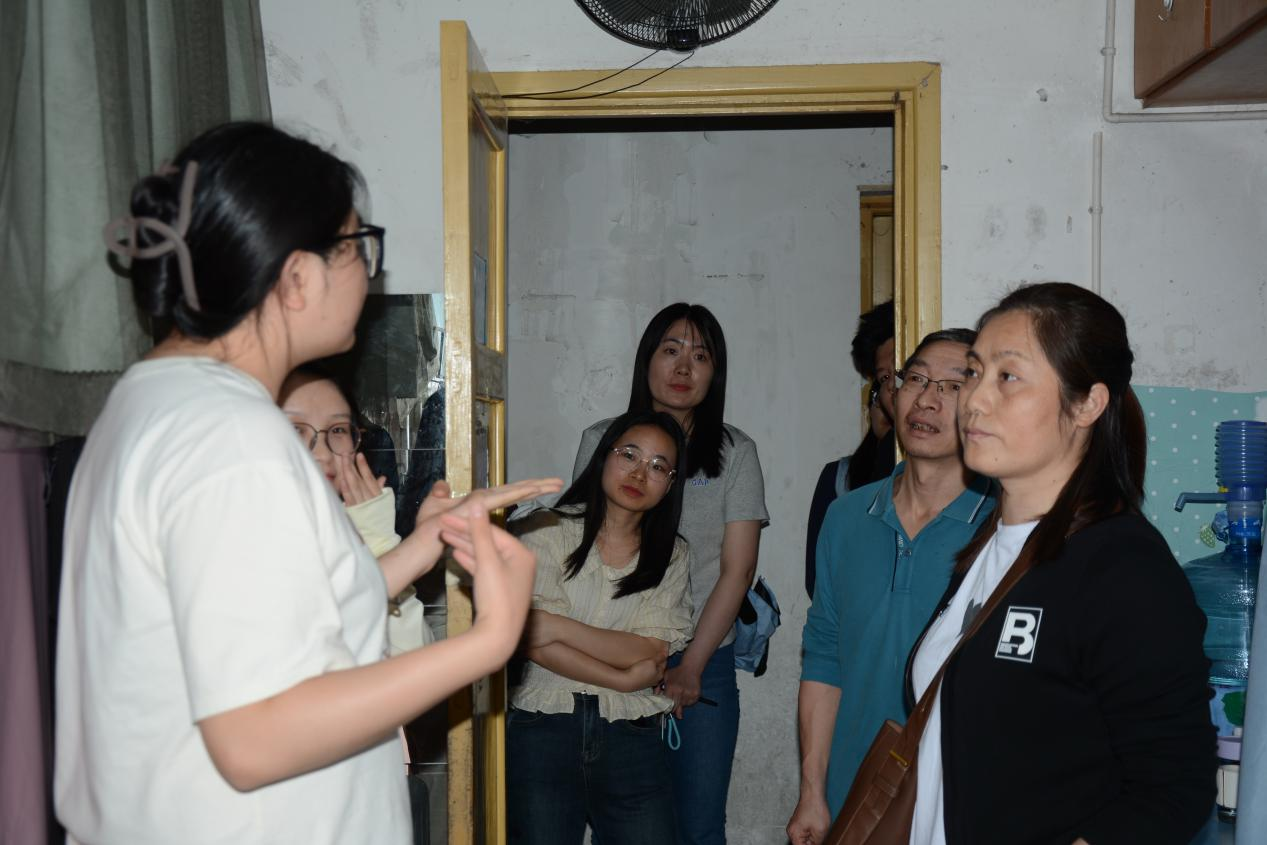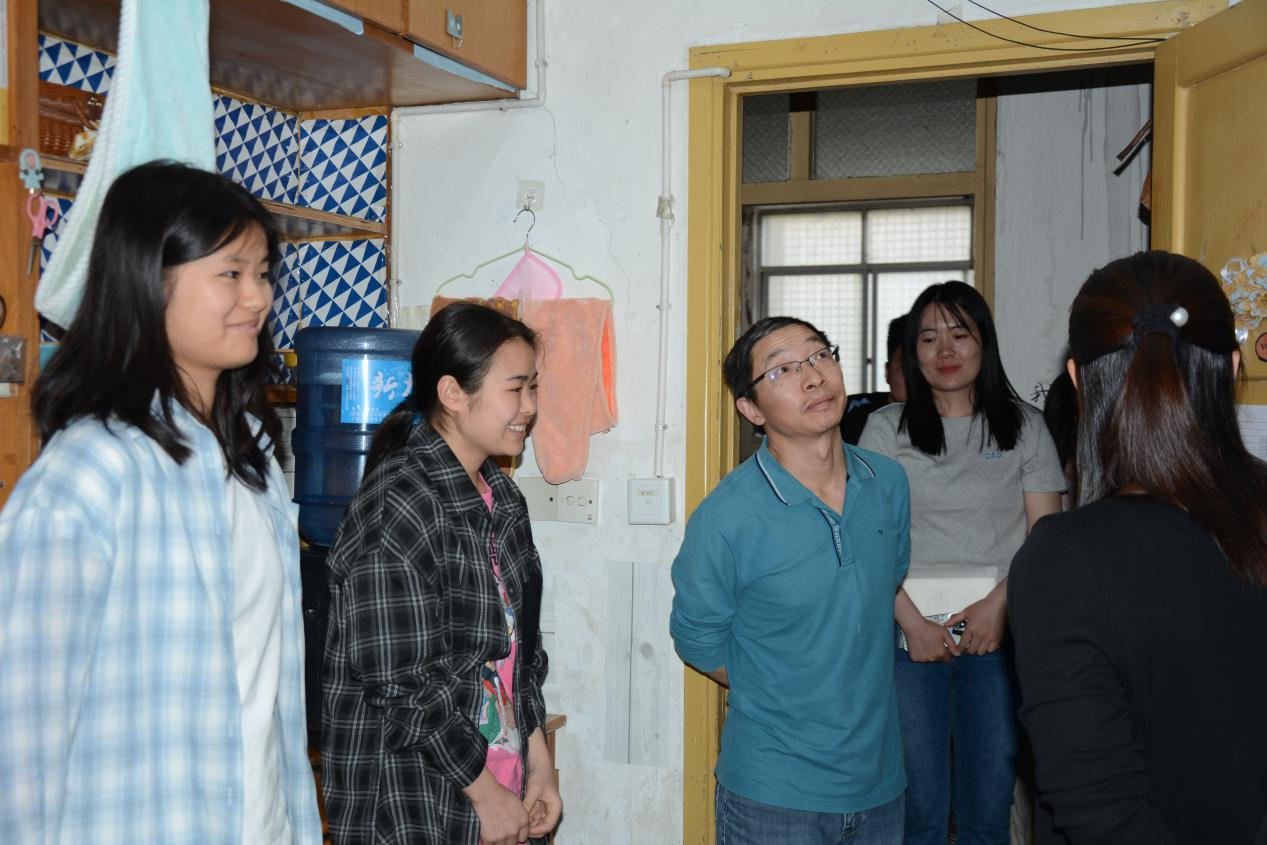 (图为学院老师询问研究生会部分成员学生宿舍近况)