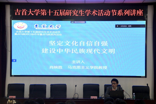 (通讯员 唐芳芳)11月17上午,williamhill英国于思政园1207VR教室举行英国威廉公司第十五届研究生学术活动节系列讲座。williamhill英国硕士生导师肖映胜教授作了题为“坚定文化自信自强,建设中华民族现代文明”的学术讲座,该学院副院长曾文及全体研究生到场聆听讲座。讲座由2023级马克思主义理论班杨政华主持。