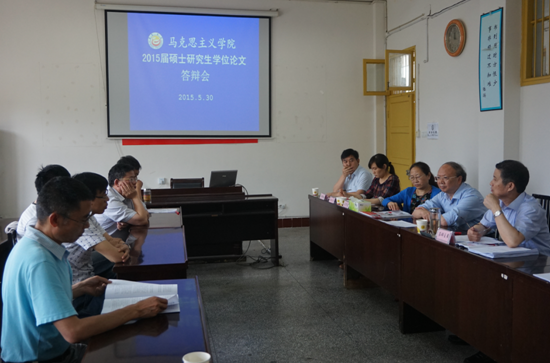 本网讯(文/意如)奋斗三载,展翅一朝。5月30日上午8:00,我院马克思主义理论学科2015届硕士研究生毕业论文答辩会分别在本院会议室、信工学院会议室举行。参加本次答辩的硕士研究生有龙树成、易进、吴昭园、尚道文、鲁萧萱、彭一熳、胡敏、张翔、向喜梅、赵蓓、高翎峰共计11人。答辩委员会分别由湖南师范大学吴家庆教授、湖南城市学院孟昭武教授担任主席。廖胜刚、吕学芳、彭兴富、王跃飞、戴林富、田筱鸿、朱廷岚、肖映胜、秦位强、陈光明、陈德祥、刘兴章、李乐为以及铜仁学院冉光仙教授应邀担任答辩委员。郑流云和罗卫红老师分别担任答辩秘书。