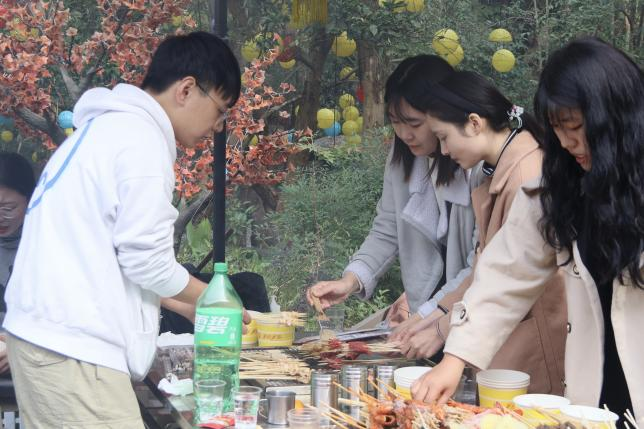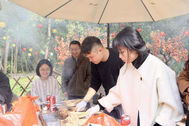 本次活动主要分为自助烧烤和趣味游戏两个环节。自助烧烤过程中,同学们互相请教、互相指导,积极参与烧烤过程。趣味游戏环节,“害你在心口难开”“撕名牌”“两人三足”等游戏项目依次进行。现场气氛热烈,同学们情绪高涨,到处洋溢着欢声笑语。