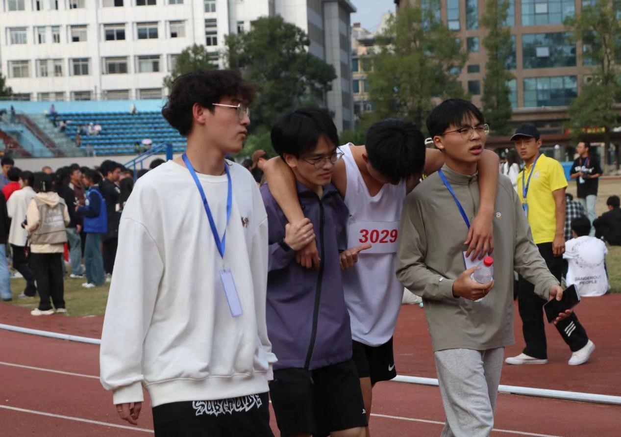 师生携手,赛出风采。每一滴汗水,每一次拼搏,都是青春的见证。此次运动会上,院党委书记柴绪亮,副院长曾文、刘因灿,辅导员袁梓翔亲临现场慰问运动员,指导学生场外工作。赛场上运动员们轻捷如燕,威猛如鹰,为挑战自我而奋斗,为集体荣誉而拼搏。他们扬帆起航,乘风破浪,在长跑、铁饼、跳高等项目中,随处可见他们奋斗的身影。他们突破自我,勇往直前,其中,杨健在男子800米项目中斩获银牌,周姗缘、夏玲、彭煊、朱雨晶、周琪、唐祥云、易可、冀宗妍也在各项目中勇获佳绩。马院学子劲往一处使,心往一处想,精诚团结,共铸辉煌。