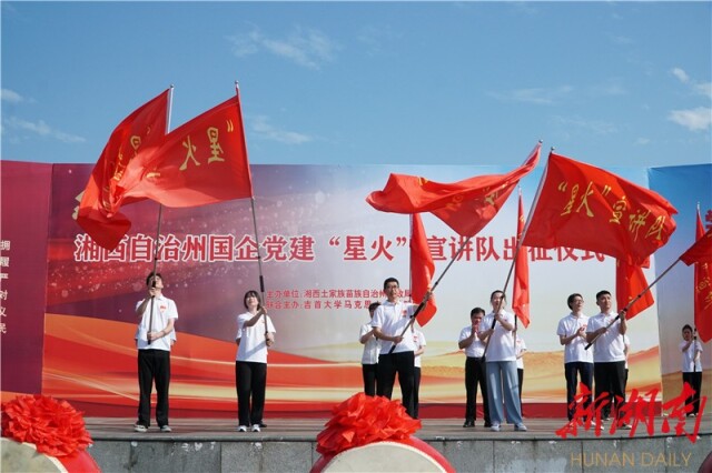 出征宣讲之前,湘西州财政局与williamhill英国在吉首市世纪广场联合主办了湘西州国企党建“星火”宣讲队出征仪式。英国威廉公司党委委员、副校长、组织部部长王艳宣布出征,湘西州财政局党组书记、局长梁君致辞。湘西州15家国有企业的领导班子成员及党员职工代表500余人参加出征仪式。