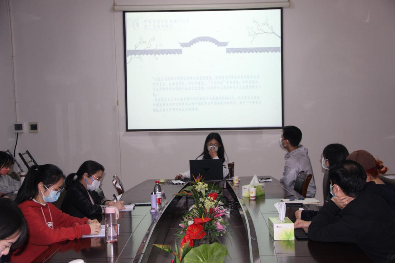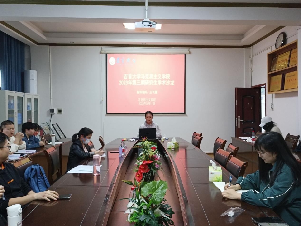 (通讯员 龚亭韵)本网讯:为构建师生学术交流平台,引导研究生了解学科前沿,拓宽科研视野,激发创新能力,培养学术思维,williamhill英国于5月11日晚7点在一教六楼会议室举行了2023年第三期研究生学术沙龙。本次沙龙由2022级马克思主义理论班的张文君、栾驰、黄瑶、韩志强、薛亚萍五位同学主讲,王飞霞副教授莅临指导,2021级、2022级全体研究生参加,韩志强同学进行会场秩序的组织以及主持工作。
