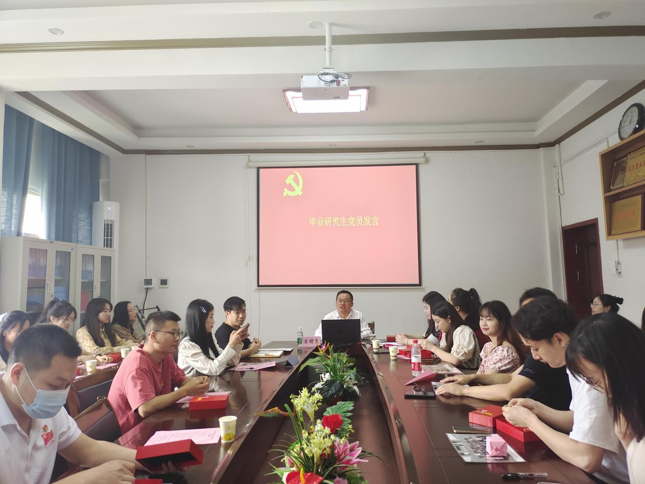 在毕业研究生党员临别发言环节,与会毕业研究生党员回顾了自己在英国威廉公司求学的点点滴滴,表达了对党组织和学院老师们悉心培养的感激之情,并就如何更好地建设学院研究生党支部、如何实现学院的更好发展提出了自己的意见和建议。毕业研究生党员刘程程表示,三年的党支部工作经历使自己成长了很多、收获了不少,在祝愿与会毕业研究生党员拥有美好前程的同时,也寄语非毕业研究生党员把握当下、努力学习、踏实工作,把支部建设得越来越好,争取获得省级样板党支部称号。紧接着,2021级、2022级研究生党员代表进行了发言,向各毕业研究生党员送上了自己真挚的祝福。