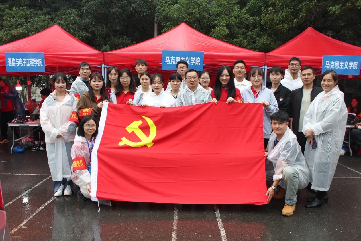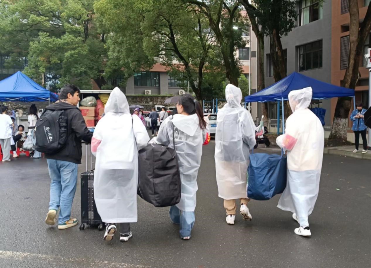 活动过程中,党员同志们身着雨衣,佩戴党员徽章、亮身份,戴袖章,扛责任。他们积极为新生提供引导、咨询、行李搬运等服务,帮助新生完成入学报到流程,带领新生了解熟悉校园环境,保证42名新生顺利报到、安心入住。此外,党员同志们还向新生介绍了支部相关情况,号召新生不断提高自身思想觉悟,积极向党组织靠拢。