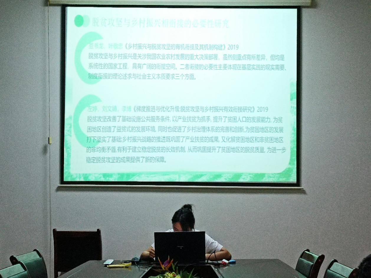 黄婷则以“脱贫攻坚与乡村振兴战略有效衔接文献综述”为题,围绕国内理论界关于脱贫攻坚与乡村振兴相衔接的必要性、问题及路径的研究现状进行了阐释,并结合研究现状进行了研究评述。
