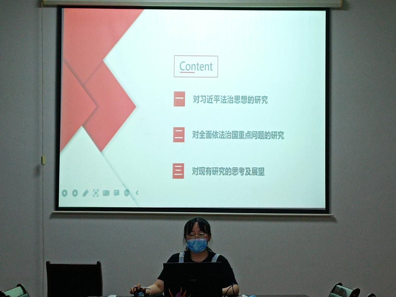 赵玉以“国内学界关于全面依法治国研究综述”为题,向大家介绍了当前国内理论界关于习近平法治思想及全面依法治国重点问题的研究现状,同时对现有研究进行了述评与展望。