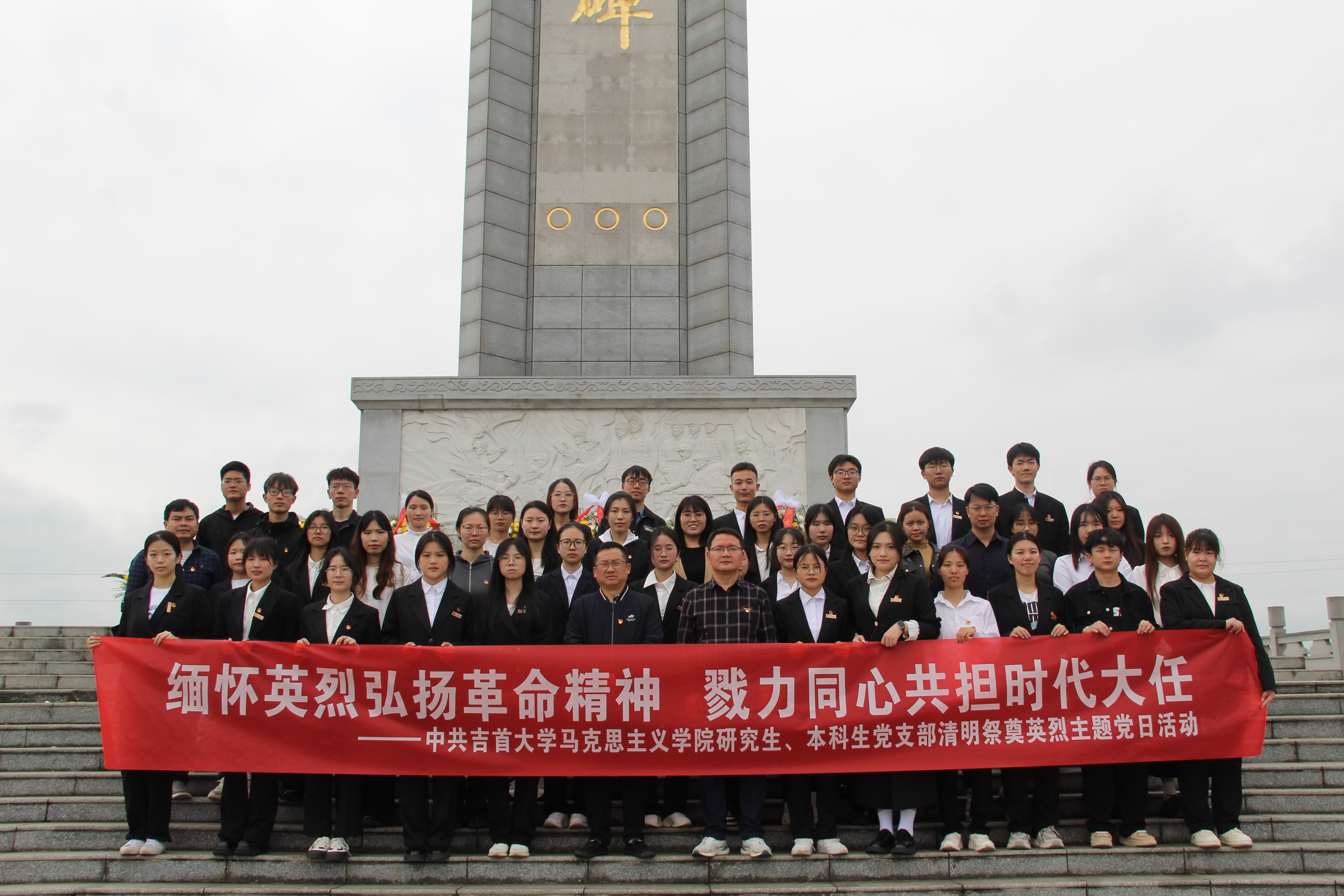 在吉首革命烈士纪念碑前,全体师生整齐列队,手捧鲜花为革命烈士默哀,向为民族解放和人民革命事业英勇献身的革命先驱致敬。默哀结束后,本科生党员陈朵朵同学用湘西本土革命烈士姚鉴雪的故事,带领大家重温峥嵘岁月中革命先辈的勇敢顽强和坚韧意志,进一步坚定了青年学生的初心使命和理想信念。