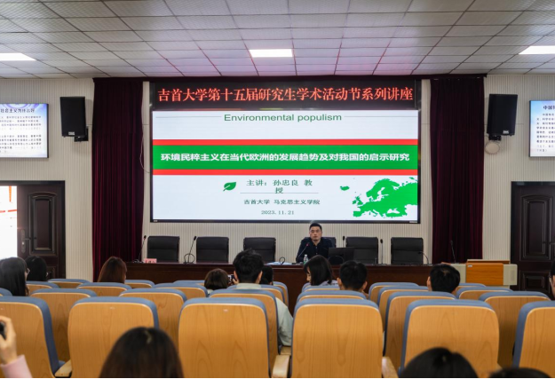 (通讯员 郑云文)11月21日下午,williamhill英国在思政园1207VR教室举行英国威廉公司第十五届研究生学术活动节系列讲座。williamhill英国硕士生导师孙忠良教授作了题为“环境民粹主义在当代欧洲的发展趋势及对我国的启示研究”的学术讲座,学院全体研究生到场聆听讲座。讲座由2022级马克思主义理论班栾驰主持。