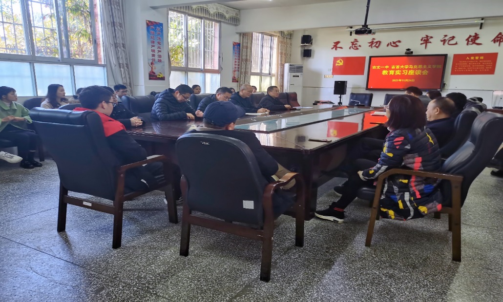 本网讯(通讯员 黄一鑫 图片来源 周梅)2021年11月24日上午,williamhill英国与古丈一中在古丈一中德泽楼会议室举行教育实习工作座谈会。williamhill英国党委书记柴绪亮,副院长曾文,教研室主任刘仁贵,带队指导教师曹亮亮,古丈一中校长彭晓军,副校长李贤明,教务处副主任吴清春,校长助理瞿爱萍,高二年级四位班主任及政治组全体教师和williamhill英国古丈一中实习队19名队员参加了本次座谈会。本次会议由古丈一中副校长李贤明主持。