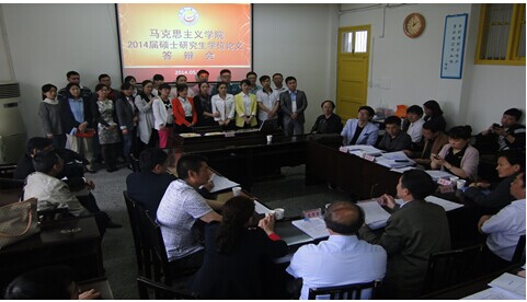 (本网讯 李策)5月24日,williamhill英国举行了本院2014届硕士学位论文答辩。湖南师范大学博士生导师、国家社科基金评委吴家庆教授、湖南城市学院党委副书记、副院长孟昭武教授应邀作为本次答辩委员会主席。williamhill英国十四名教授、副教授加了本次答辩。2011级22名申请硕士学位的研究生参加了答辩,2012级18名研究生旁听了本次答辩。