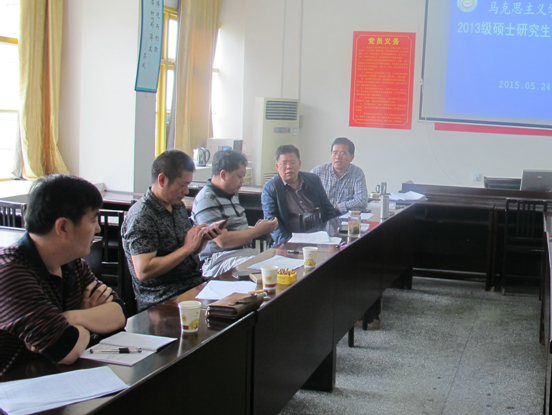本网讯(文/薛菁)根据研究生处《关于2015年研究生中期考核工作安排的通知》精神,对研究生掌握本学科基本知识以及科研能力进行评价,以考察其是否具备进入下一阶段学习的能力,5月24日上午8点30分,我院马克思主义理论学科2013级硕士研究生中期考核工作在学院会议室进行。考核工作由廖胜刚院长主持,硕士生导师朱廷岚、彭兴富、刘兴章、李乐为、郑流云以及2013级硕士研究生王永霞、宁笑菲、张元元、张紫艳、陈微湘、任燎原、龚璇、童春香、向爽、樊涛、黄思思、彭帅、岑庆知、薛菁、蒋一娴、梁诚嘉、冯蕾出席。
