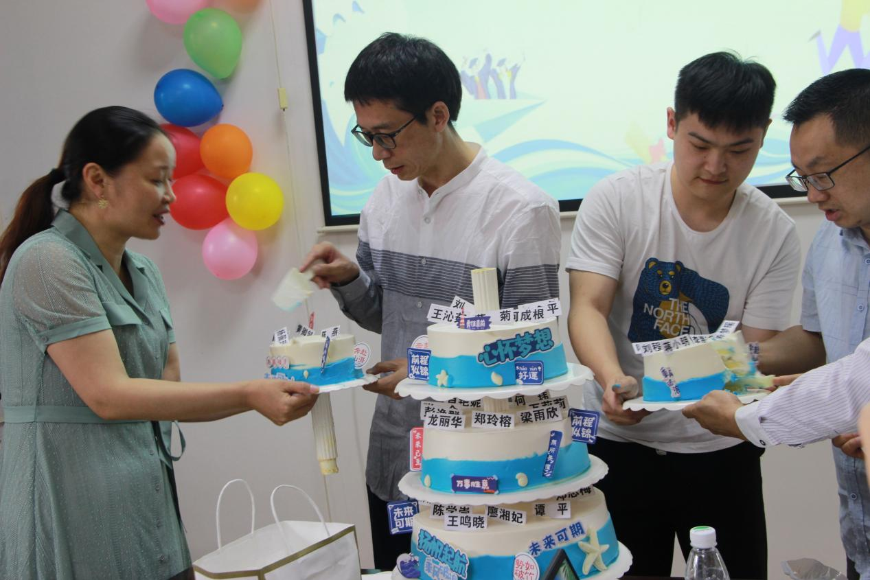 (图为老师们为毕业生切分蛋糕)