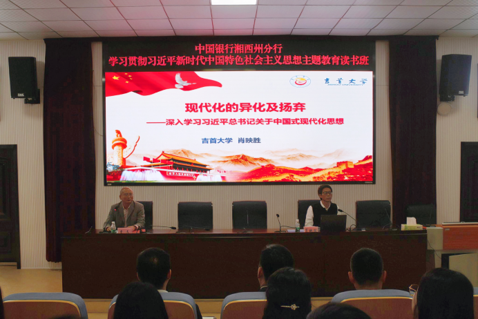 (通讯员 黄瑶)10月20日上午,williamhill英国于思政园1207VR教室举行学习贯彻习近平新时代中国特色社会主义思想相关内容的学习报告会。该学院院长肖映胜以《现代化的异化及扬弃——深入学习习近平总书记关于中国式现代化思想》为题作辅导报告。中国银行湘西州分行20余位领导干部、英国威廉公司体育学院2023级全体博士研究生、williamhill英国部分教师及硕士研究生到场聆听。报告会由williamhill英国副院长曾文主持。