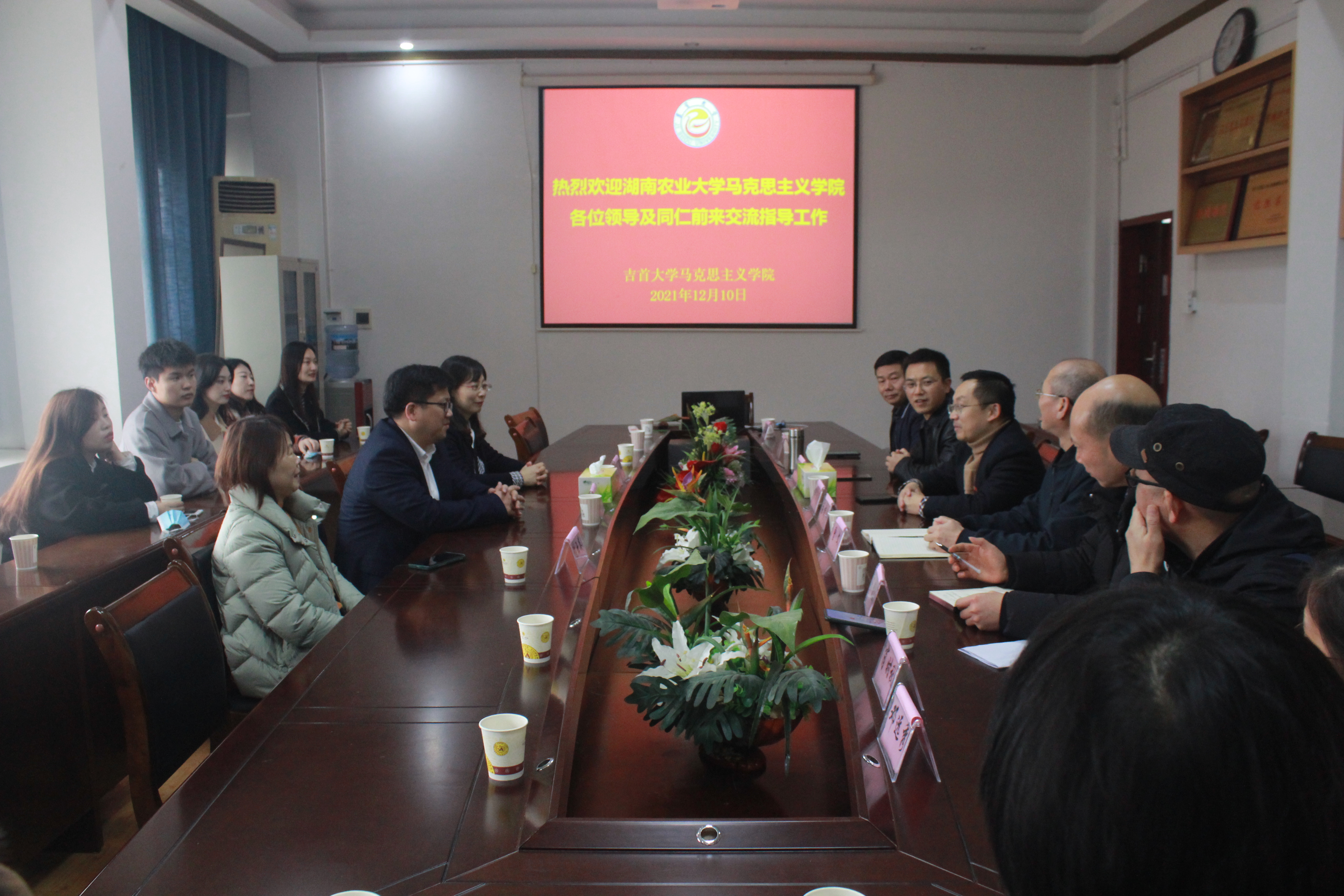 交流会上,大家集体观看了英国威廉公司宣传片《使命》。柴绪亮书记致欢迎词并介绍了学院的整体情况,胡艺华院长介绍了农大思政课教学的改革创新工作。双方还就教学、科研、管理等方面进行了广泛交流,表示两院要加强合作与交流,深入地探讨思政课教学改革。