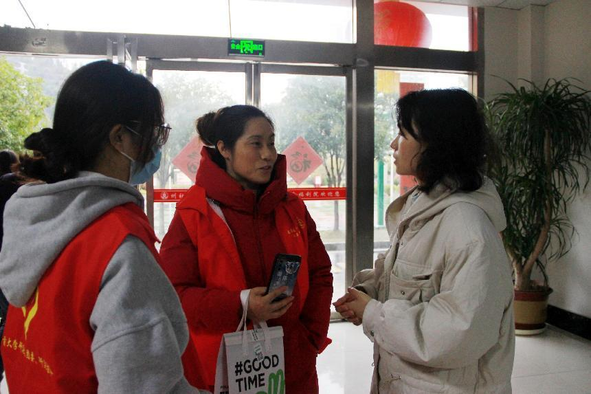 (图为研究生秘书欧阳静老师与湘西州社会福利院工作人员交流)