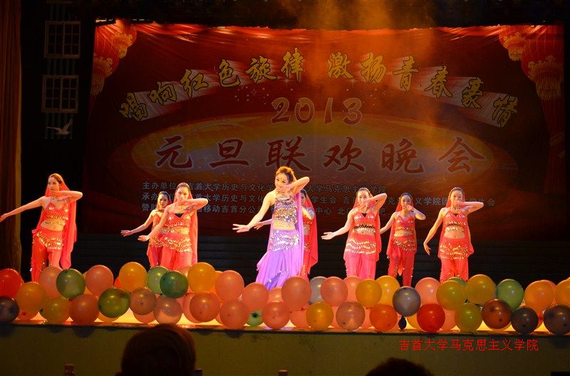 晚会前,朱书记做了一番慷慨激昂的讲话。随后一首欢快的《好运来》则宣告晚会正式拉开序幕。激情热火的机器舞,诙谐幽默的穿越小品,气势磅礴的诗歌朗诵,绚丽多彩的舞蹈……演员的每次登场总能赢得观众的阵阵喝彩。而靓丽的礼仪小姐和身着苗服的姑娘们,则将晚会引向了另一个高潮。舞台上下的互动,使浓厚的节日氛围在晚会现场弥漫开来。最后,舞蹈《阳光路上》为本次联欢晚会划上了一个圆满的句号。