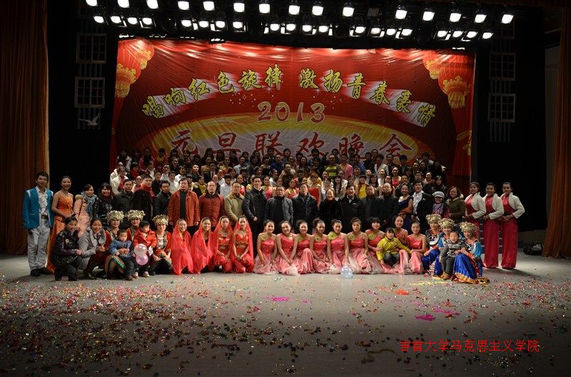 在演员同工作人员的共同努力下,观众们享受到了一场温馨快乐的新年祝福盛宴。晚会结束后,晚会人员同老师们合照留念。